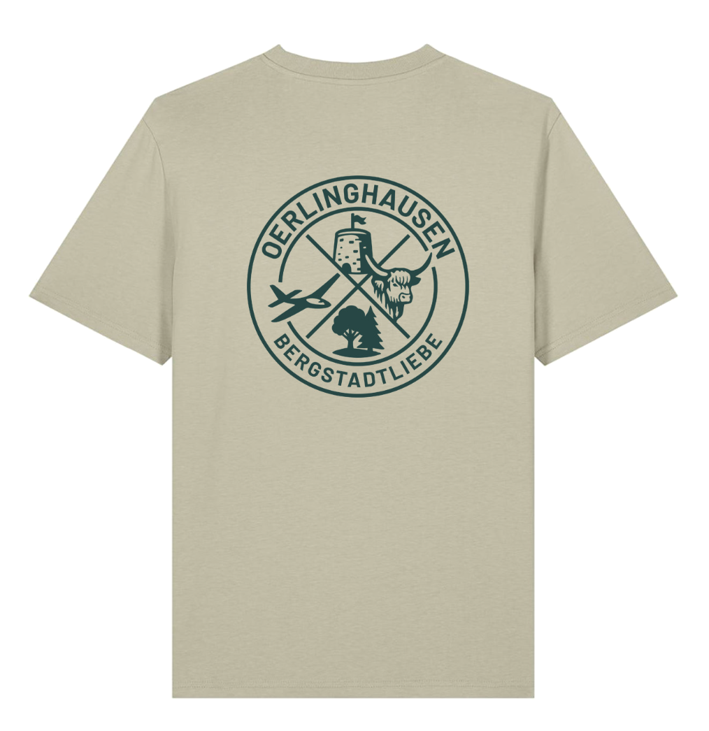 Brustdruck: Waldsilhouette mit Koordinaten von Oerlinghausen (o. Abbildung) / Rückendruck: rundes Emblem „BergstadtLiebe“ (siehe Abbildung)
